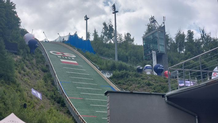 Daher ging es zuerst zu den Wisla Sprungschanzen in Polen. Die Anfahrt zog sich etwas aufgrund des hohen Verkehrsaufkommen. Also wir da wussten wir auch warum, es fand ein Weltcup auf den Schanzen statt. Die Siegerehrung der Damen konnten wir an der Leinwand verfolgen 😁😁
