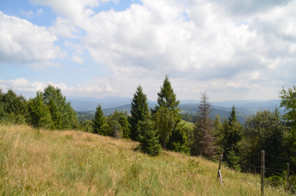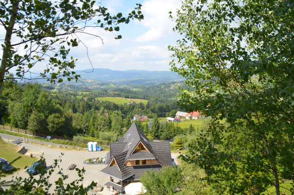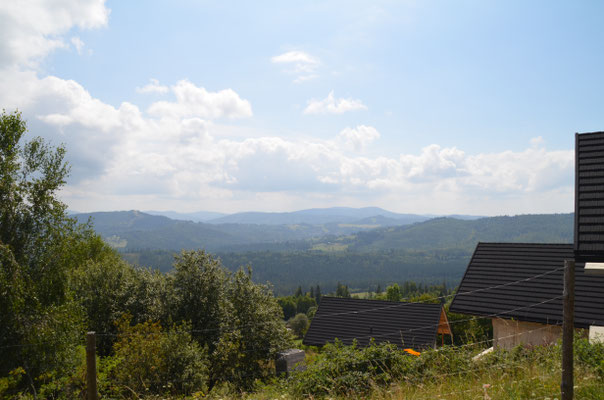 Weiter ging es zu Aufgabe 1: Koniakowska Pass. Hier mussten zwei Buchstaben gelöst werden. Die Höhe des Steinbruchs schätzen und die Differenz der Jahreszahlen auf dem Gedenkstein bilden. Dazu konnten wir noch eine herrliche Aussicht bis in die Tatra genießen.